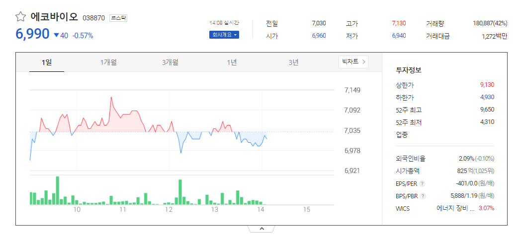 에코바이오 주가 분석