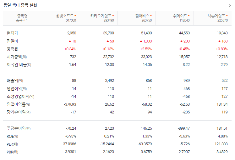 한빛소프트 현재 주가는 2,940원이며 전일 대비 -35원의 모습을 보이고 있습니다. 한빛소프트의 주주현황을 살펴보면 티쓰리엔터테인먼트(외 3인)이 지분 38.00%를 소유하고 있습니다. 한빛소프트는 게임 소프트웨어 기업으로 장중 기준으로 주가는 2,940원 입니다. 삼성전자의 시가 총액은 730억 원이며 발행 주식수는 1.64주 입니다. 외국인 보유 비중은 76,146% 이며 장중 거래량은 24,822,362를 기록했습니다. 매출액은 88억 원, 영업이익은 35억 원을 달성했습니다. EPS는 없음원이며 한빛소프트 주식 배당수익률은 -7% 입니다.