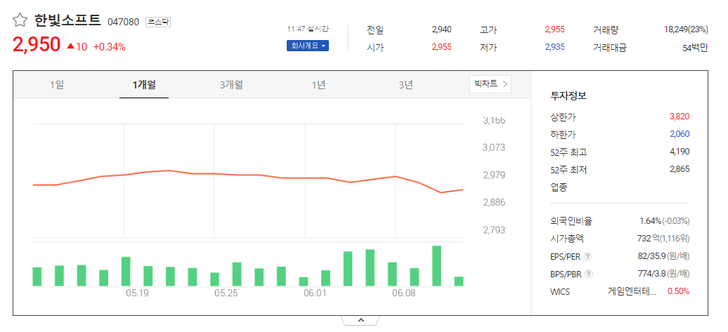 한빛소프트 주가 전망 상태 시장 흐름 분석