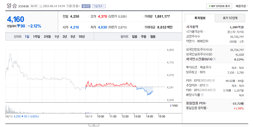 일승 주가 분석