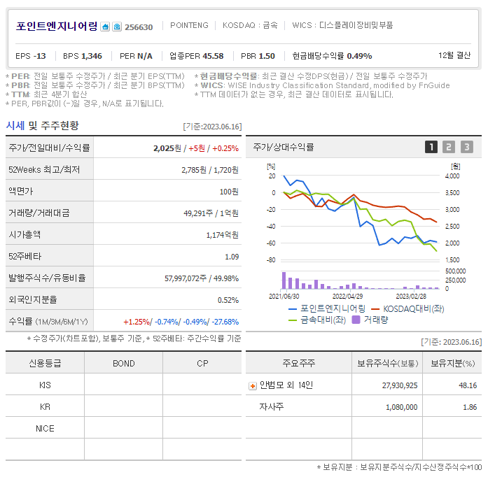 포인트엔지니어링 주가 전망 분석표와 기업 정보 알아보기