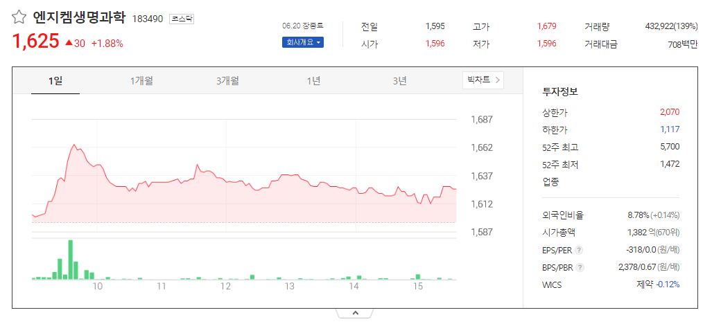 이 글에서는 엔지켐생명과학 주가 전망과 목표 주가, 기업 정보에 대해서 설명합니다. 주식 투자를 하려면 기업의 현재 주가와 재무 상태에 관해서 살펴보는 것은 매우 중요합니다. 엔지켐생명과학 주식의 주요 현황과 투자 정보를 확인하시고 주가 현황을 시장에 맞춰서 분석해보겠습니다.