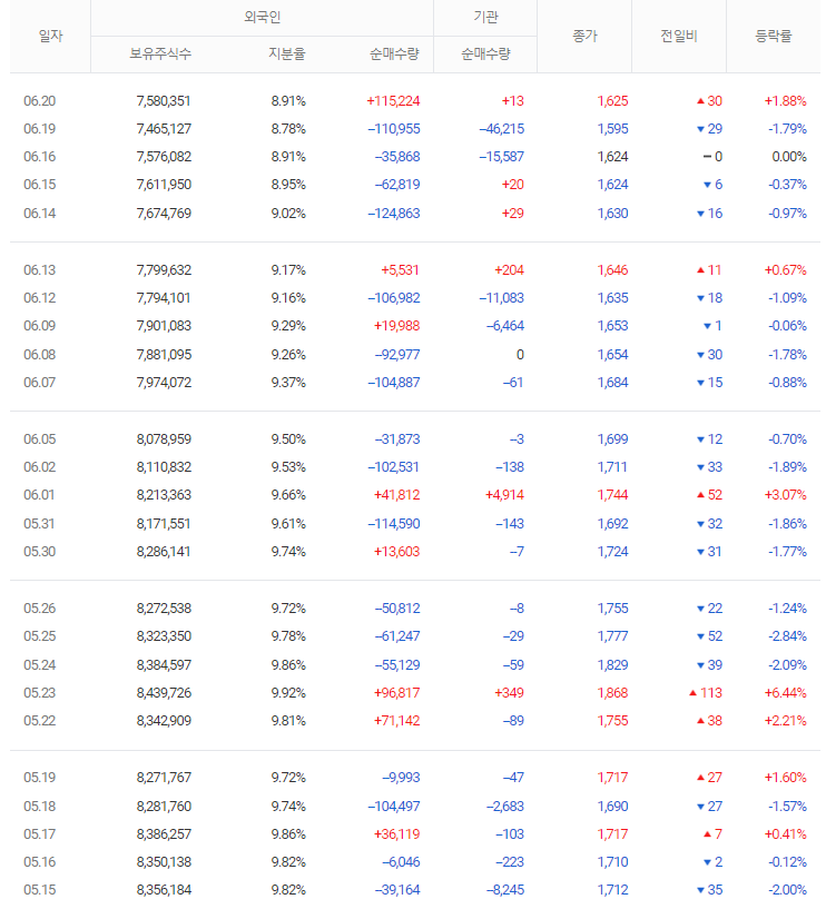 그렇기에 개인 투자자는 기관이나 외국인 세력들을 따라하는 방법밖에 없습니다. 세력이 약한 개인 투자자는 외국인과 기관의 매수 매도 흐름을 잘 관찰만 해도 수익을 낼 수 있습니다. 최근 흐름은 외국인 보다 기관의 흐름을 따라하는 경향이 강합니다. 외국인 매수는 허수가 많고 개인이 원하는 단기 거래는 기관과 비슷하기 때문입니다.