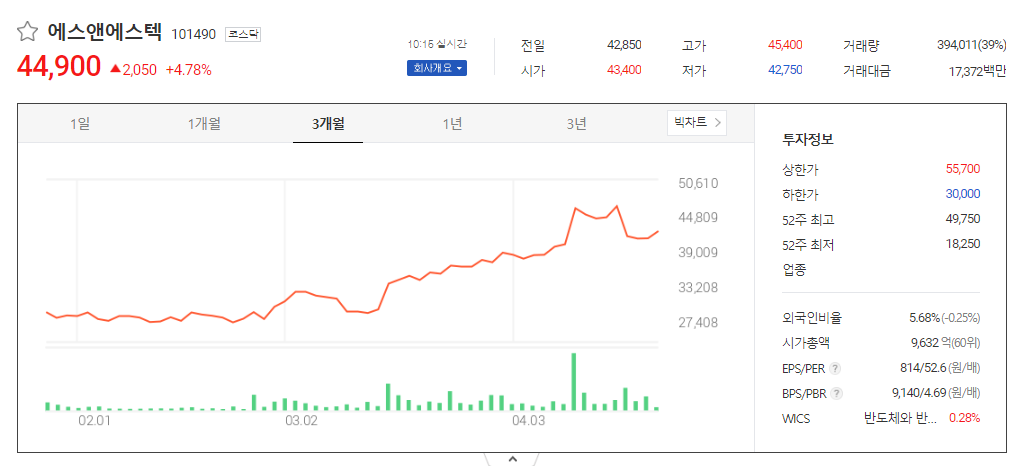 이 글에서는 에스앤에스텍 주가 전망과 목표 주가, 기업 정보에 대해서 설명합니다. 주식투자 전에 정확한 기업 정보와 주가 현황에 대해 살펴보는 것이 굉장히 중요합니다. 에스앤에스텍 주식의 주요 현황과 투자 정보를 확인하시고 주가 흐름을 파악해보겠습니다.