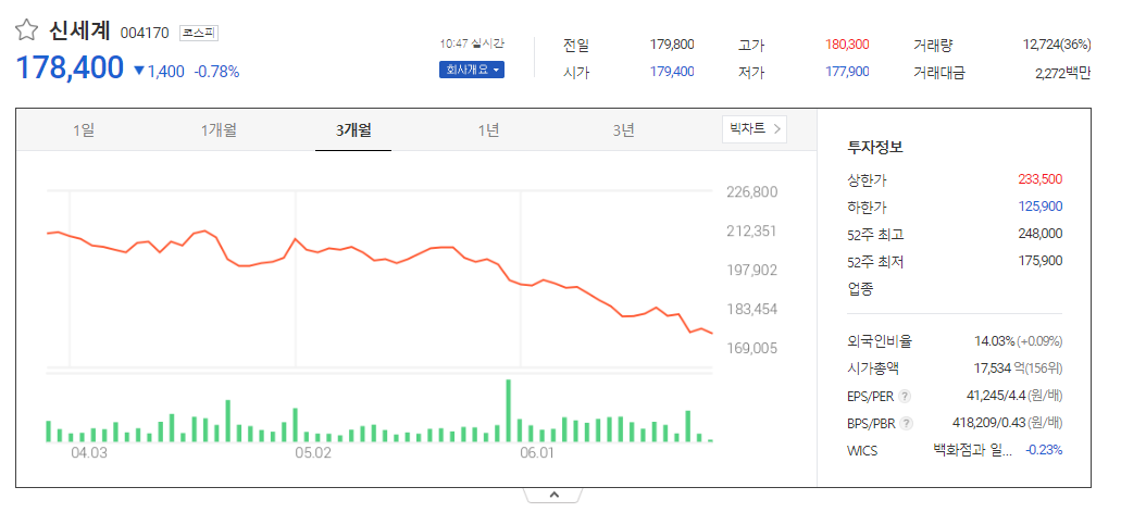 이 글에서는 신세계 주가 전망과 목표 주가, 기업 정보에 대해서 설명합니다. 주식 투자 전에 기업의 현재 주가와 재무 상태에 관해서 알아보는 것은 매우 중요합니다. 신세계 주식의 주요 현황과 투자 정보를 확인하시고 주가 흐름을 파악해보겠습니다.