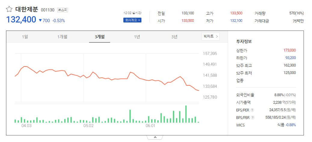 이 글에서는 대한제분 주가 전망과 목표 주가, 기업 정보에 대해서 설명합니다. 주식을 제대로 하기에 앞서 기업 주가 정보와 재무 상태를 분석하는 것이 필요합니다. 대한제분 주식의 주요 현황과 투자 정보를 확인하시고 주가 흐름을 파악해보겠습니다.
