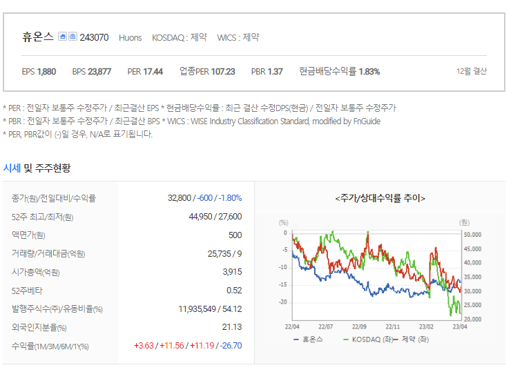 휴온스 가치 분석