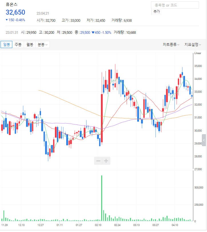 휴온스 주가 분석