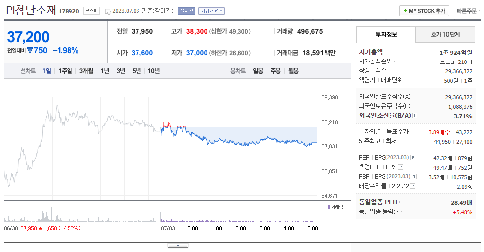 PI첨단소재 주가 전망 예상, 목표 주가 확인
