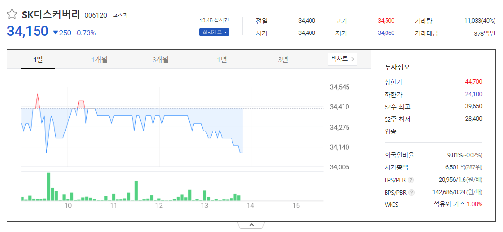 이 글에서는 SK디스커버리 주가 전망과 목표 주가, 기업 정보에 대해서 설명합니다. 주식에 투자하기 전에는 기업 주가 정보와 재무 상태를 알아보는 것은 아주 중요합니다. SK디스커버리 주식의 주요 현황과 투자 정보를 확인하시고 현재 시장 현황을 살펴보겠습니다.