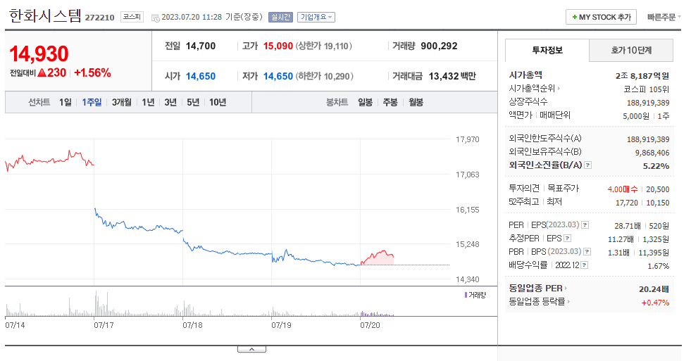 이 글에서는 한화시스템 주가 전망과 목표 주가, 기업 정보에 대해서 설명합니다. 주식투자 전에 기업 주가와 재무 현황표에 대해서 살펴보는 것은 매우 중요합니다. 한화시스템 주식의 주요 현황과 투자 정보를 확인하시고 현재 시장에서의 위치를 분석해보겠습니다.
