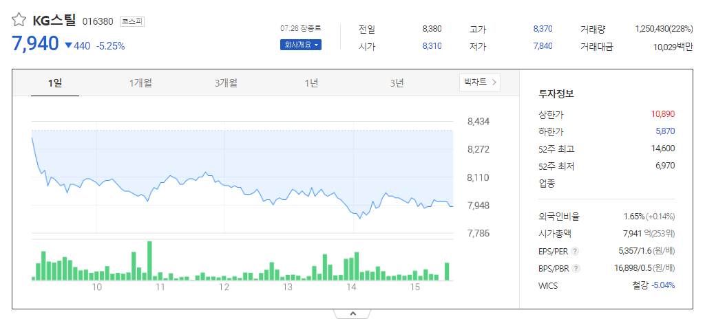 KG스틸 주가 전망 상태 시장 흐름 분석
