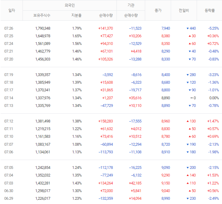 그래서 개인 투자 주체는 기관이나 외국인 세력들을 따라갈 수 밖에 없습니다. 세력이 약한 개인 투자자는 기관과 외국인의 매수 현황을확인만해도 수익을 낼 수 있습니다. 최근 흐름은 외국인보다는 기관 투자자를 따라가는 경우가 많습니다. 외국인의 매수는 속임수가 있을 수 있고 개인 투자자들이 좋아하는 단기 투자는 기관투자가 적합하기 때문입니다.