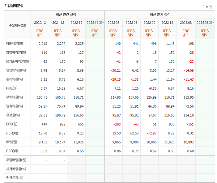 -2023년 3월 전년동기 대비 별도기준 매출액은 41.3% 증가, 영업손실은 34.1% 감소, 당기순손실은 44.6% 감소. 동사는 지난 50년간 군 무선통신 발전을 위해 특수통신 및 전술통신장비를 생산/공급하면서 축적된 기술을 바탕으로 업계 내 경쟁적 입지를 확보함. 해외 업체들로부터도 다양한 신규 절충교역 사업 공동 추진 및 전략적 협력관계 구축을 제의받고 있음.