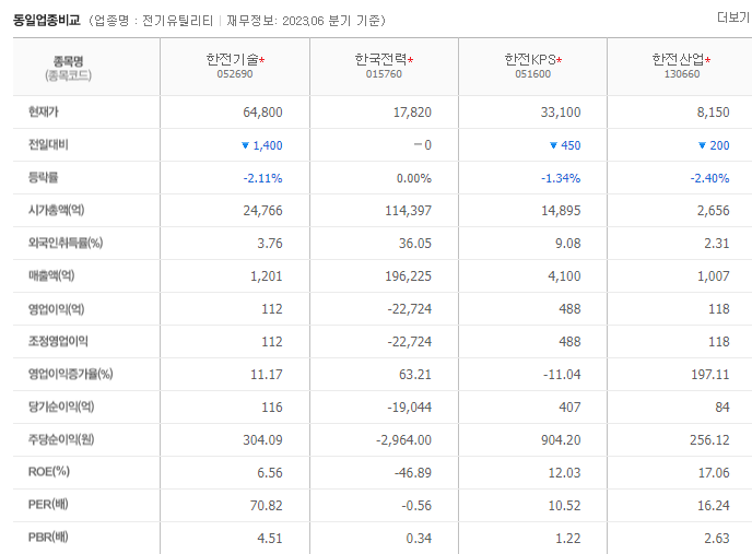 한전기술 주식 결론