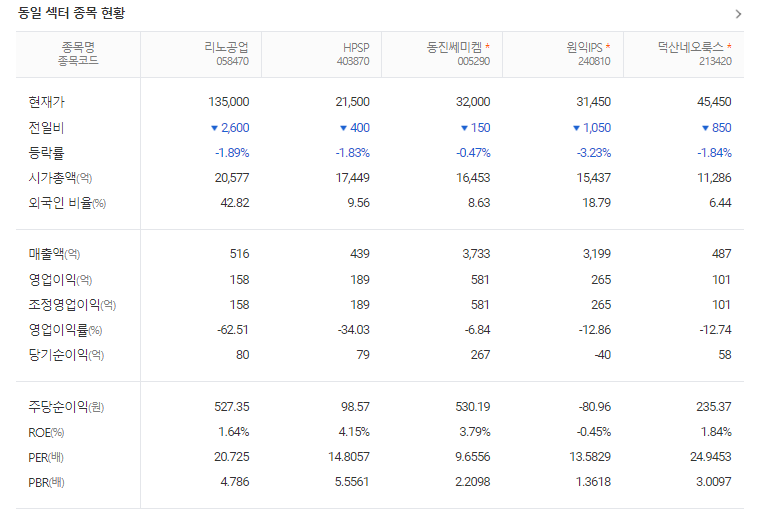리노공업 주가 분석