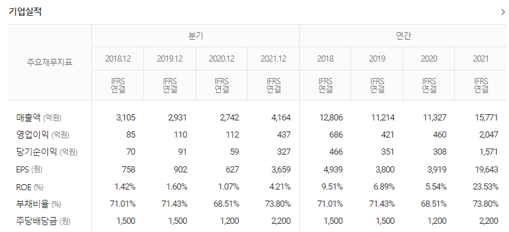 -2023년 6월 전년동기 대비 연결기준 매출액은 19.5% 감소, 영업이익은 71.6% 감소, 당기순이익은 79.3% 감소. 주력제품인 에폭시수지 제품의 판매 부진과 더불어 원가율 상승으로 인해 영업수익성 큰 폭으로 하락한 상황. 중국시장 내에서 저가의 로컬 업체와 달리 고부가가치 제품 및 특수용도의 Polyol, 특수 산업분야 공략 등을 통해 비교적 안정적인 매출 유지하고 있음.