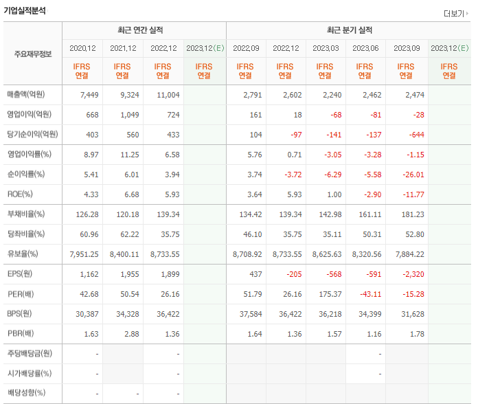 -2023년 9월 전년동기 대비 연결기준 매출액은 14.6% 감소, 영업이익 적자전환, 당기순이익 적자전환. IT Device향, 전동 공기구향 등 중소형 2차 전지 생산량과 E.V등의 대용량 2차 전지 시장의 지속적인 성장으로 동사의 신성장 동력이 될 것으로 기대되고 있음. 고객사들의 물량 대응하기 위해 헝가리 지역에 전해액 공장 준공 하였으며, 고객사들의 수요 대응을 위해 미국 현지에 공장 증설 진행하고 있음.
