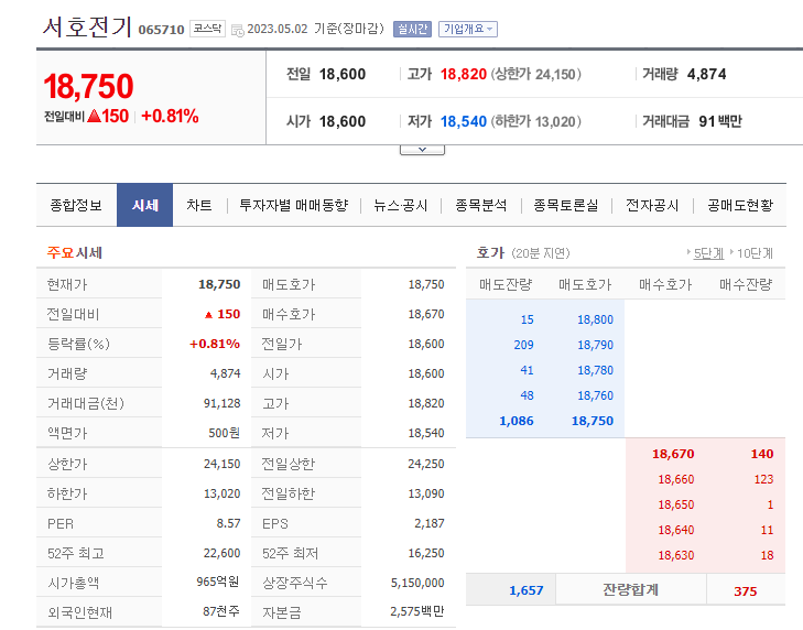 이 글에서는 서호전기 주가 전망과 목표 주가, 기업 정보에 대해서 설명합니다. 주식에 투자하기 전에는 기업 주가 정보와 재무 상태를 정리해보는 것은 아주 중요합니다. 서호전기 주식의 주요 현황과 투자 정보를 확인하시고 현재 시장 현황을 살펴보겠습니다.