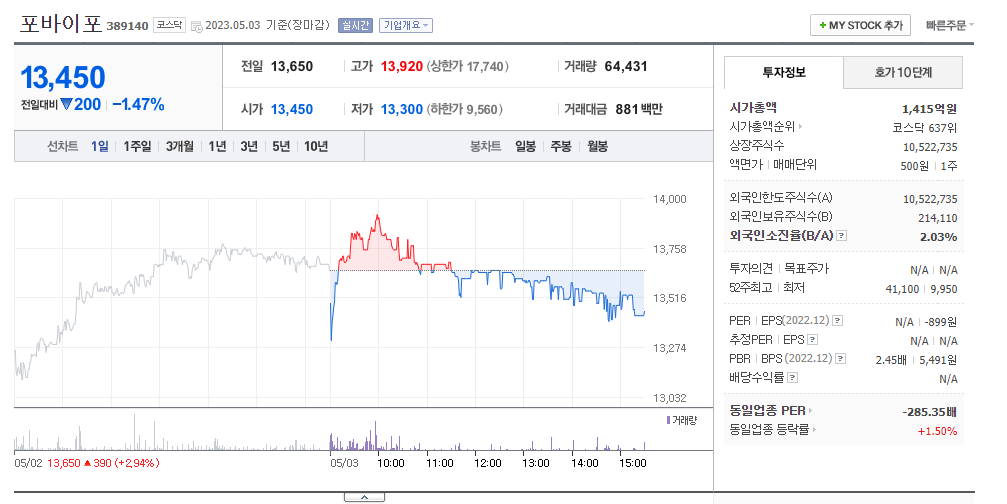 이 글에서는 포바이포 주가 전망과 목표 주가, 기업 정보에 대해서 설명합니다. 주식 투자에 앞서 기업 정보를 확인하고 주가 정보에 대해 정리해보는 것은 아주 중요합니다. 포바이포 주식의 주요 현황과 투자 정보를 확인하시고 현재 시장에서의 흐름을 파악해 보겠습니다.