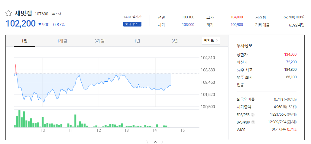 새빗켐 주가 분석