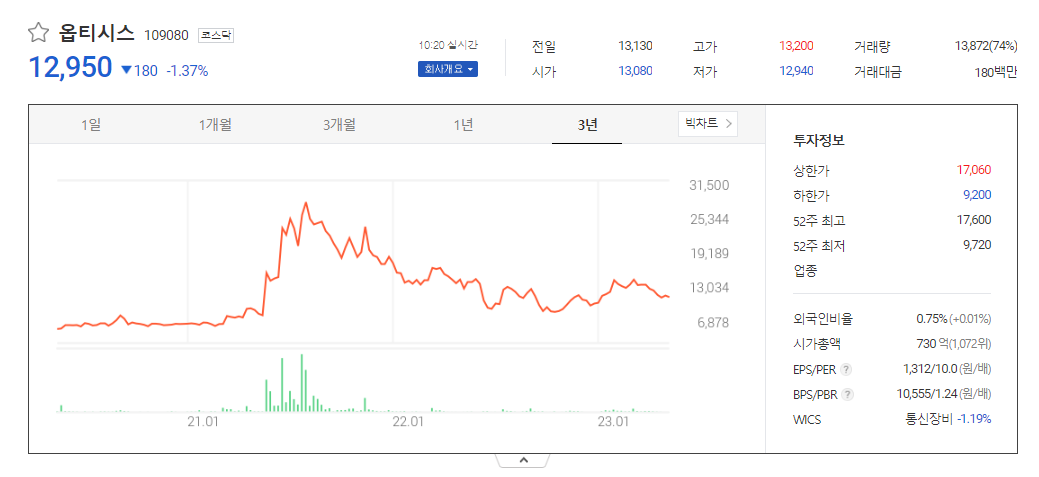옵티시스 주가 분석