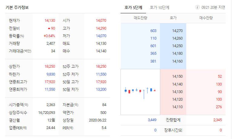 HB솔루션 현재 주가는 14,040원이며 전일 대비 -300원의 모습을 보이고 있습니다. HB솔루션의 주주현황을 살펴보면 에이치비테크놀러지(외 4인)이 지분 30.55%를 소유하고 있습니다. HB솔루션는 디스플레이 및 관련부품 기업으로 장중 기준으로 주가는 14,040원 입니다. 삼성전자의 시가 총액은 2348억 원이며 발행 주식수는 0.43주 입니다. 외국인 보유 비중은 17,913% 이며 장중 거래량은 16,720,093를 기록했습니다. 매출액은 1,876억 원, 영업이익은 7억 원을 달성했습니다. EPS는 없음원이며 HB솔루션 주식 배당수익률은 0.96% 입니다.