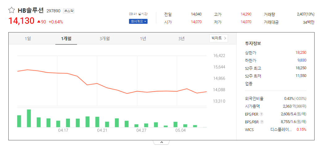 이 글에서는 HB솔루션 주가 전망과 목표 주가, 기업 정보에 대해서 설명합니다. 주식을 제대로 하기에 앞서 기업 주가 정보와 재무 상태를 살펴보는 것은 굉장히 중요합니다. HB솔루션 주식의 주요 현황과 투자 정보를 확인하시고 지금 시장 흐름을 살펴보겠습니다.