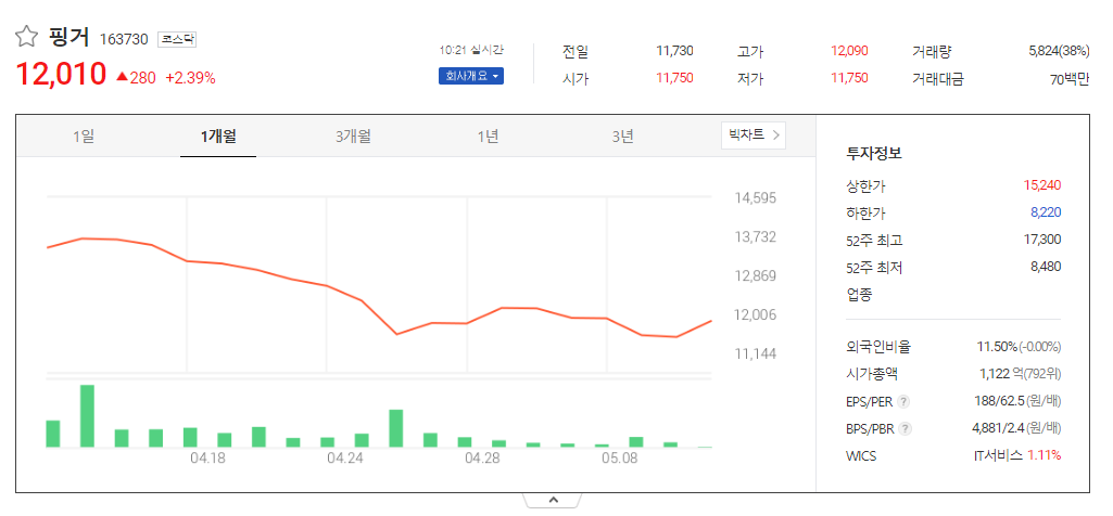핑거 주가 분석