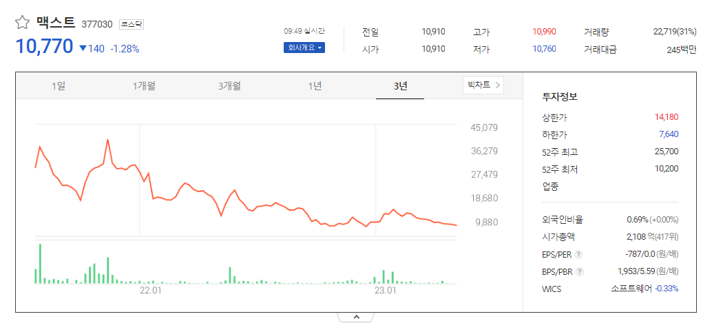 이 글에서는 맥스트 주가 전망과 목표 주가, 기업 정보에 대해서 설명합니다. 주식을 보기 전에 기업의 현재 주가와 재무 상태에 관해서 살펴보는 것이 굉장히 중요합니다. 맥스트 주식의 주요 현황과 투자 정보를 확인하시고 주가 흐름을 정리해보겠습니다.