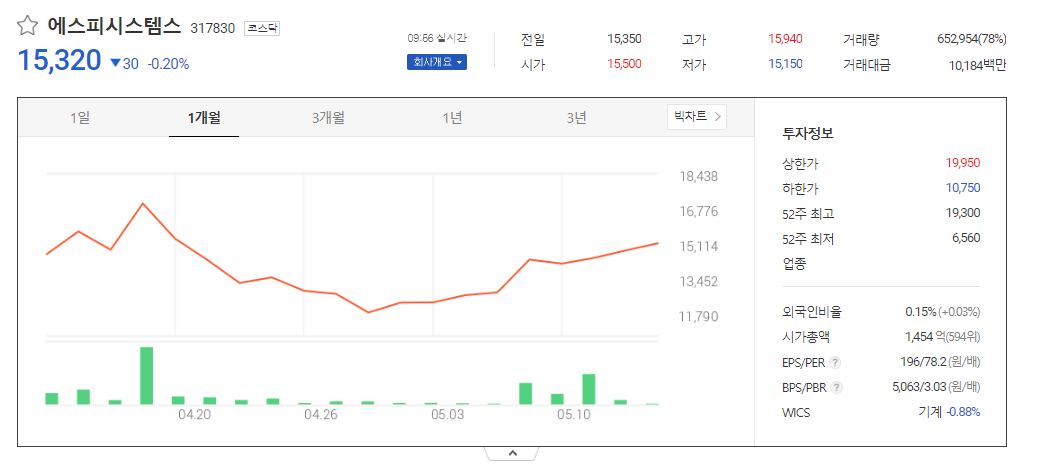 에스피시스템스 주가 분석