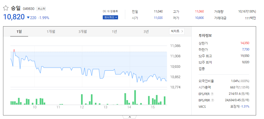 승일 주가 전망 분석표와 기업 정보 알아보기