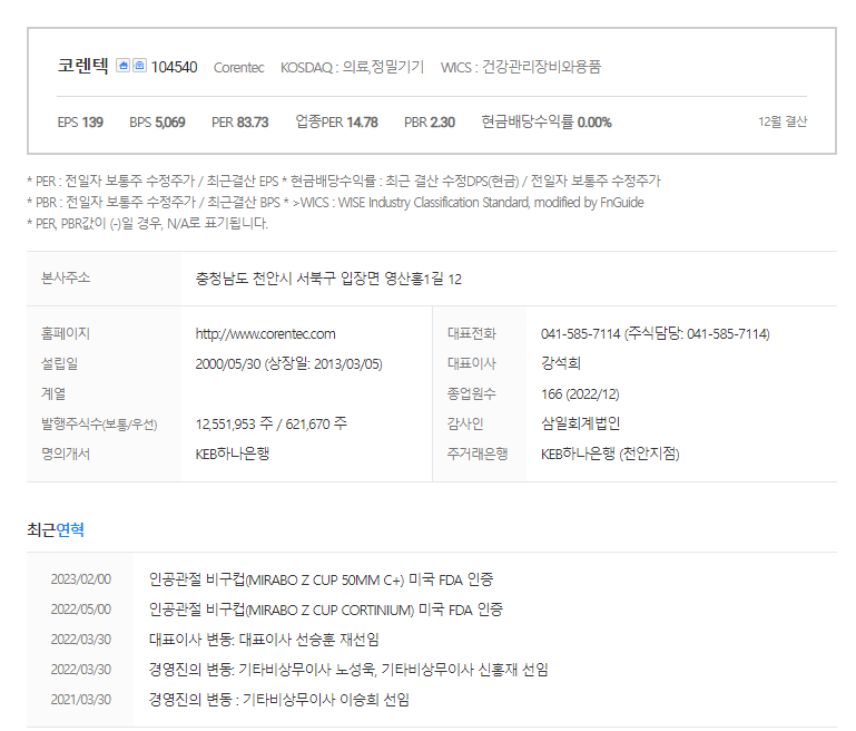 코렌텍는 의료 장비 및 서비스 기업입니다. 대표자는 강석희 이며 설립일은 2000/05/30, 주식 상장일은 2013/03/05입니다. 전체 종업원 수는166명 이고 본사 주소는 충남 천안시 서북구 입장면 영산홍1길 12입니다.