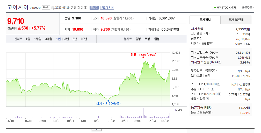 코아시아 주식 결론