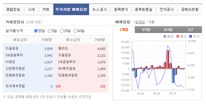 그래서 개인 투자세력은 외국인이나 기관 투자자를 따라하는 것 밖에 방법이 없습니다. 힘 없는 개인 투자자는 어떤 것들을 매수하고 매도하는지 확인하고 수익을 낼 수 있습니다. 지금 시장에서는 외국인보다는 기관 투자자를 따라하는 경향이 강합니다. 외국인의 매수는 속임수가 있을 수 있고 개인이 선호하는 단기 투자에서는 기관투자를 따라가는 것이 맞기 때문입니다.
