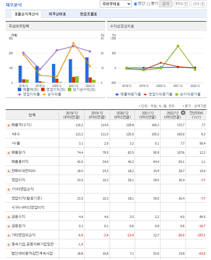 -2022년 12월 전년동기 대비 연결기준 매출액은 7.7% 증가, 영업이익은 7.7% 감소, 당기순이익은 52.9% 감소. 매출액이 소폭 증가하고 비용도 크게 증가하지 않아 영업이익도 소폭 증가한 모습을 보임. 미래 핵심 성장 동력 확보를 위해 인공지능(A.I) 분야에 연구개발을 집중하고 있으며, 향후에 인공지능 적용이 가능한 ICT 융복합 사업에도 진출할 계획임.