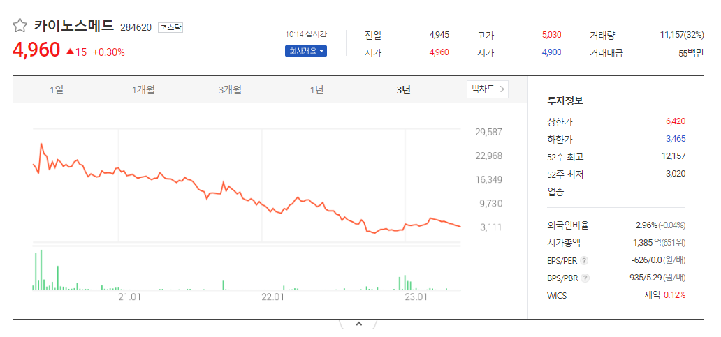 이 글에서는 카이노스메드 주가 전망과 목표 주가, 기업 정보에 대해서 설명합니다. 주식에 투자하기 전에는 기업 정보를 확인하고 주가 정보에 대해 정리해보는 것은 아주 중요합니다. 카이노스메드 주식의 주요 현황과 투자 정보를 확인하시고 현재 시장 흐름을 알아보겠습니다.